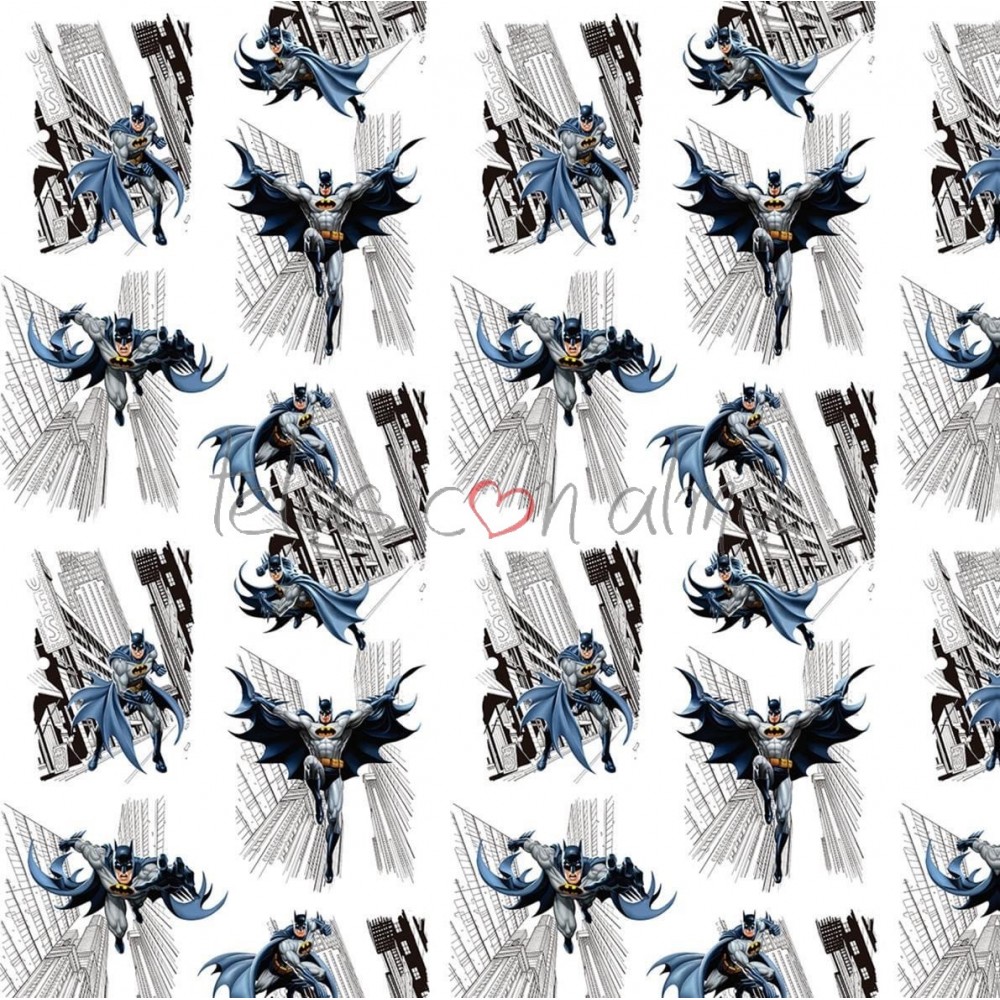 Tela de popelín de algodón 100% con dibujo de Batman, ideal para la confección de mascarillas, gorro sanitario o de cocinero, complementos en ropa, mochilas de cordón.