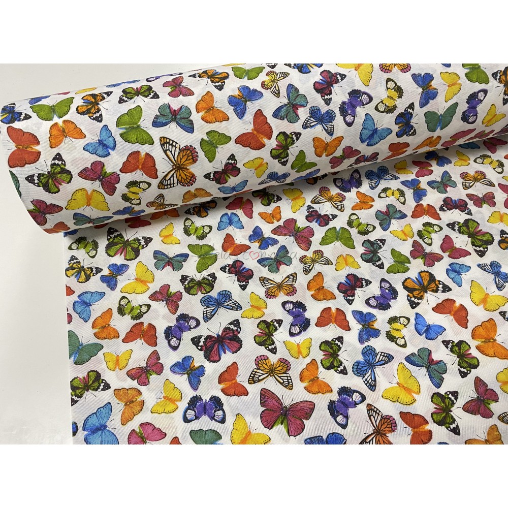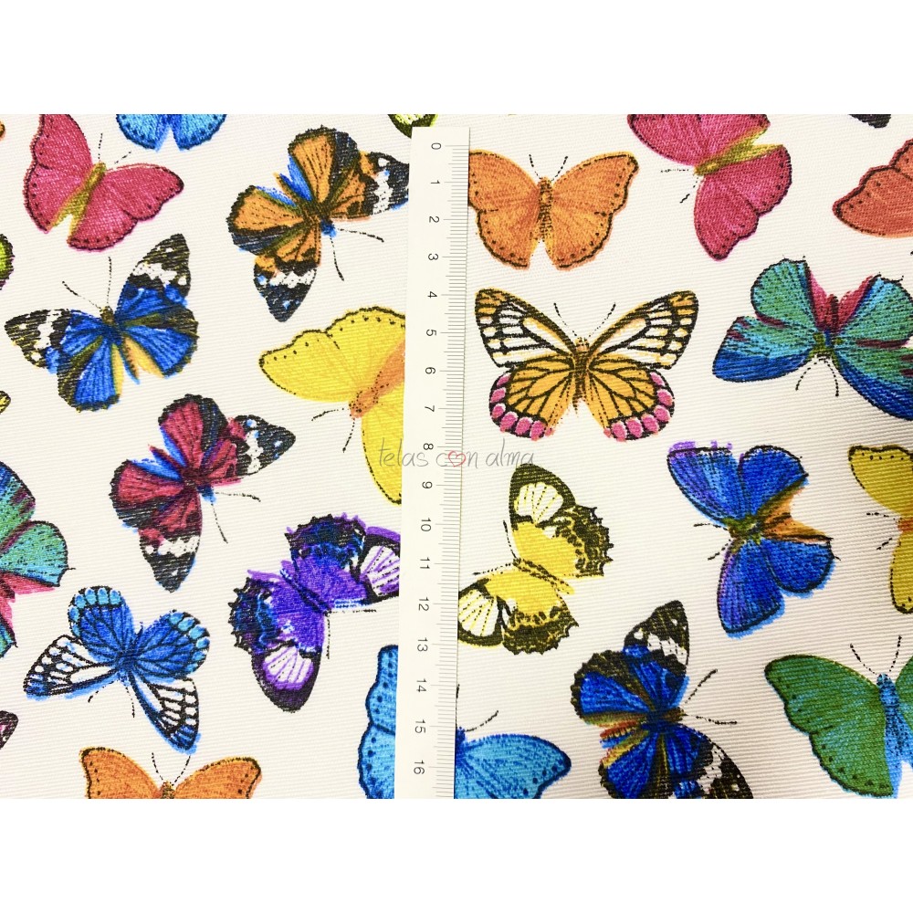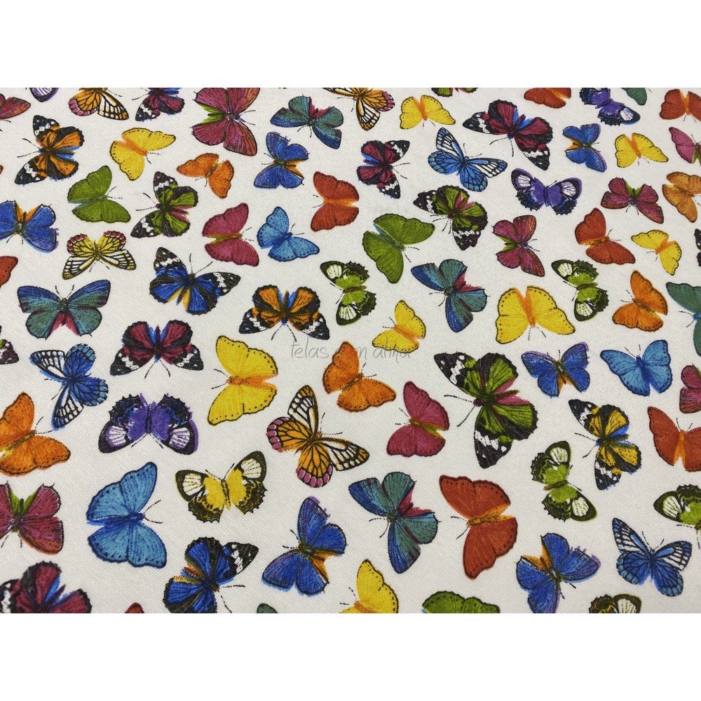Tela de loneta con mariposas de preciosos colores, ideal para la confección de todo tipo de ropa de hogar, así como para la confección de vestuario de mujer, hombre, niño y bebé.