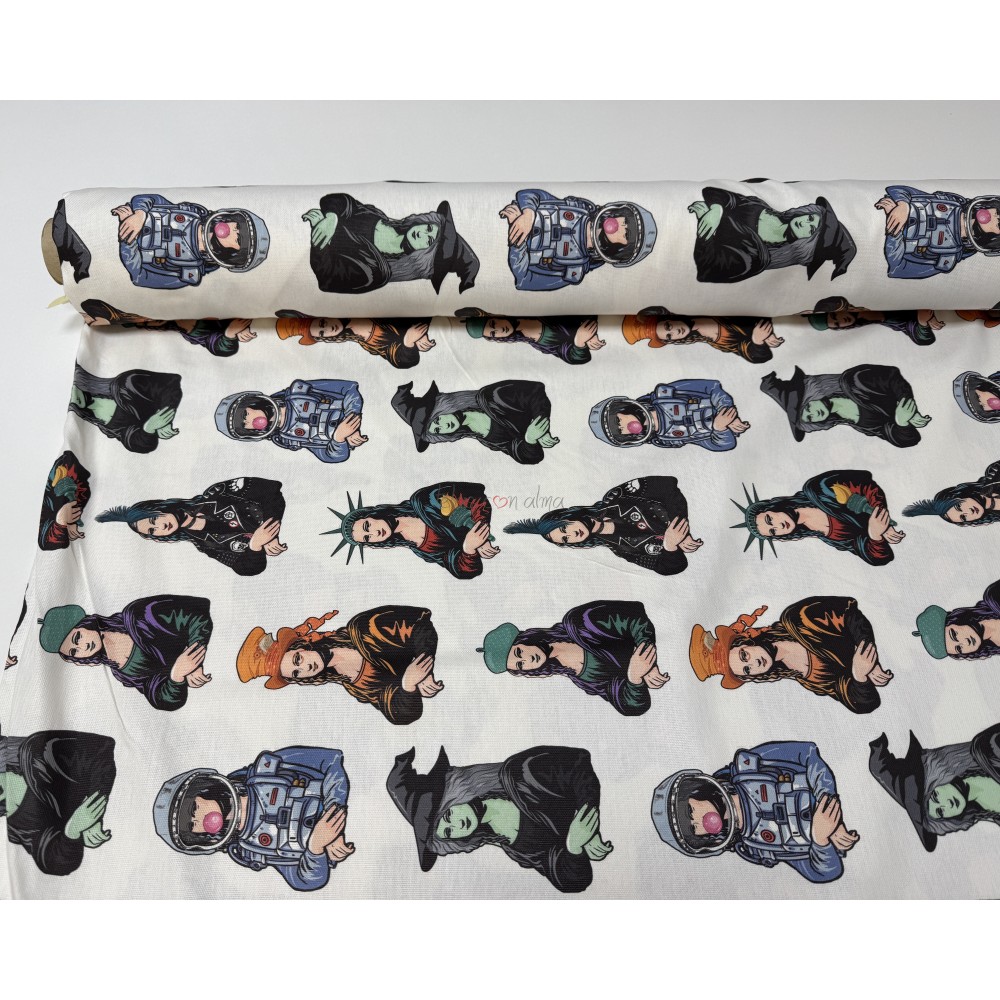 Tela de loneta half panama, con estampado digital. Ideal para la confección de todo tipo de ropa de hogar, así como para la confección de vestuario de mujer, hombre, niño y bebé.