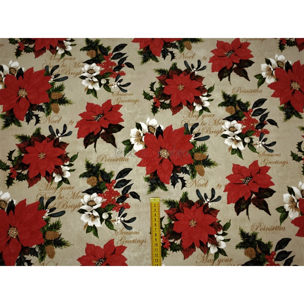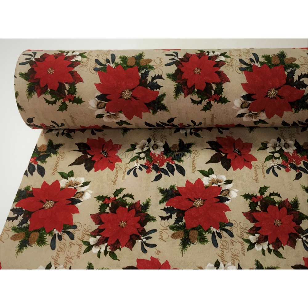 Tela de loneta con motivos navideños. Ideal para la confección de todo tipo de ropa de hogar como: mantelerías, servilletas, cojines o camino de mesa entre otros.