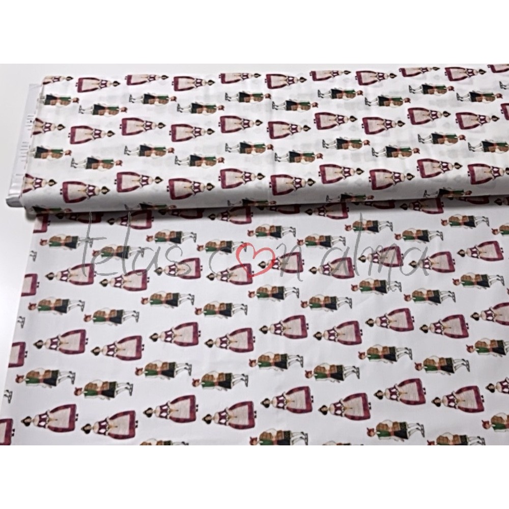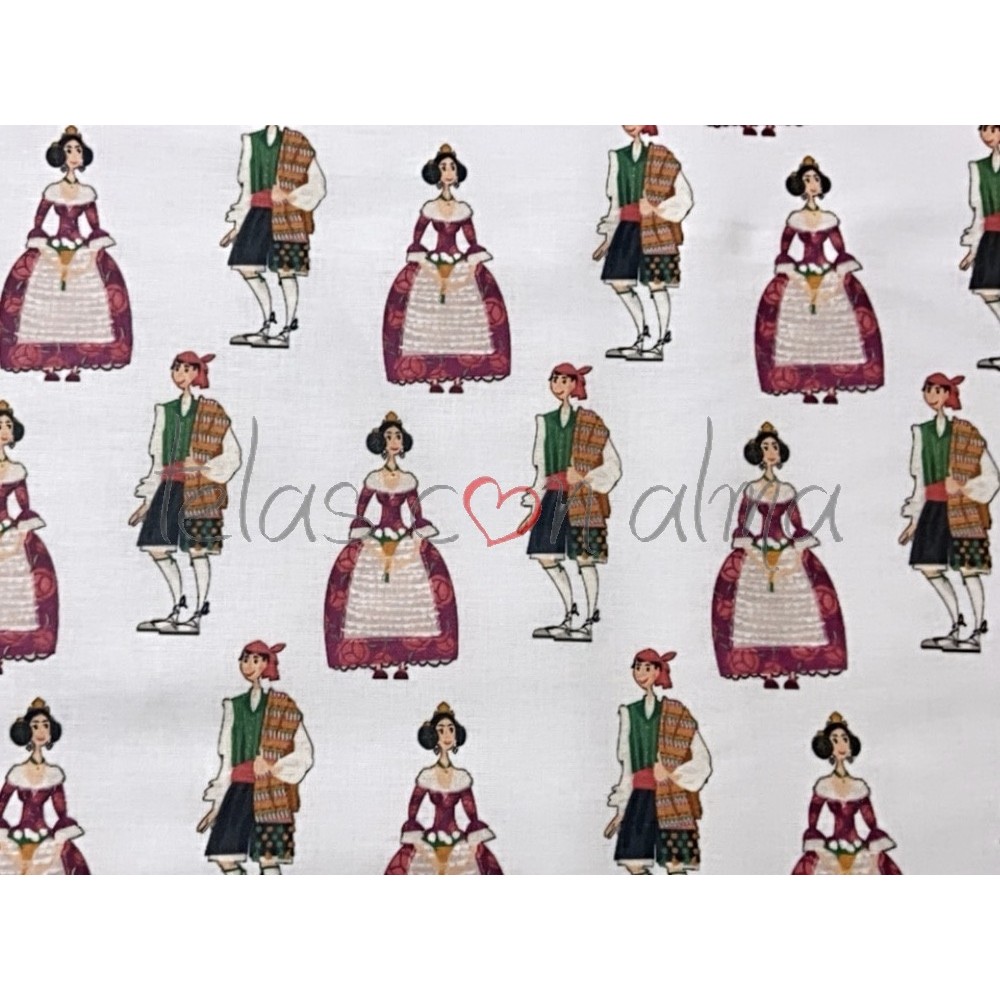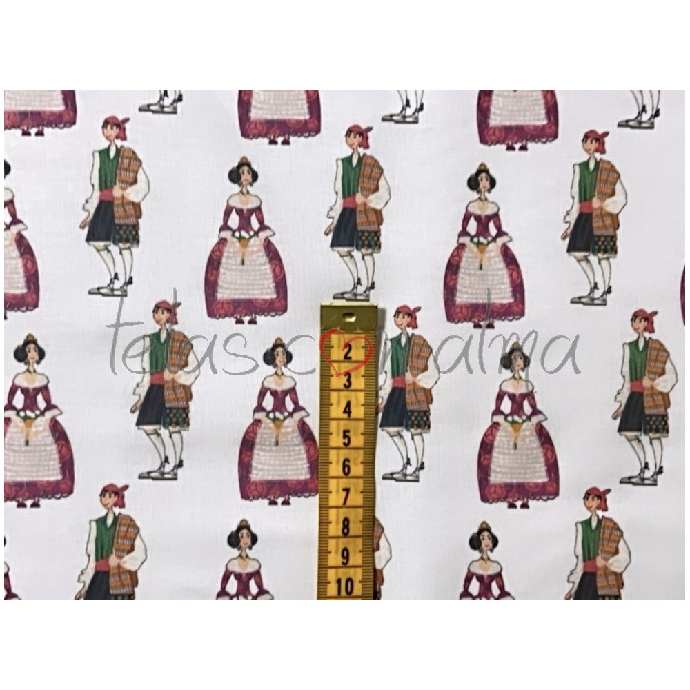 Estampado con motivos falleros, ideal para la confección de todo tipo de vestuario así como de adornos para la ropa como: bolsillos, mangas o cenefas por ejemplo.