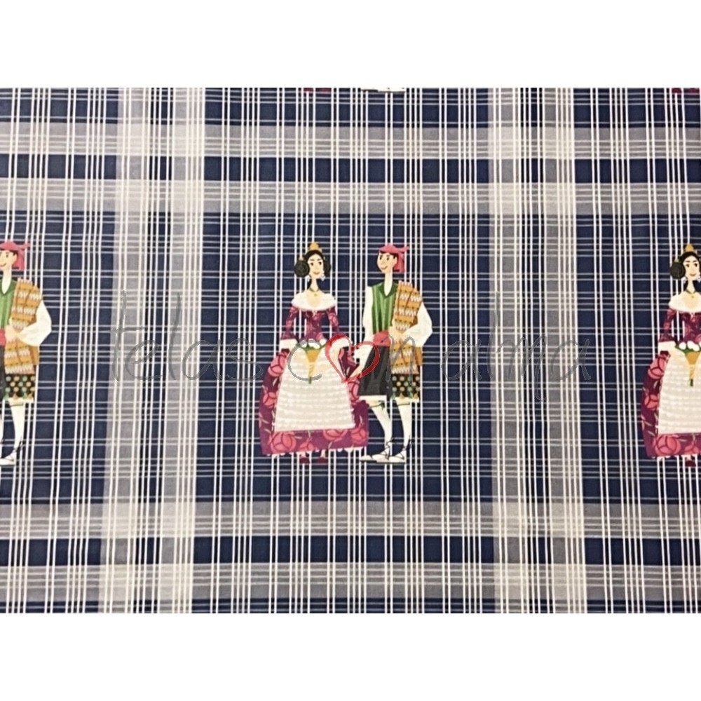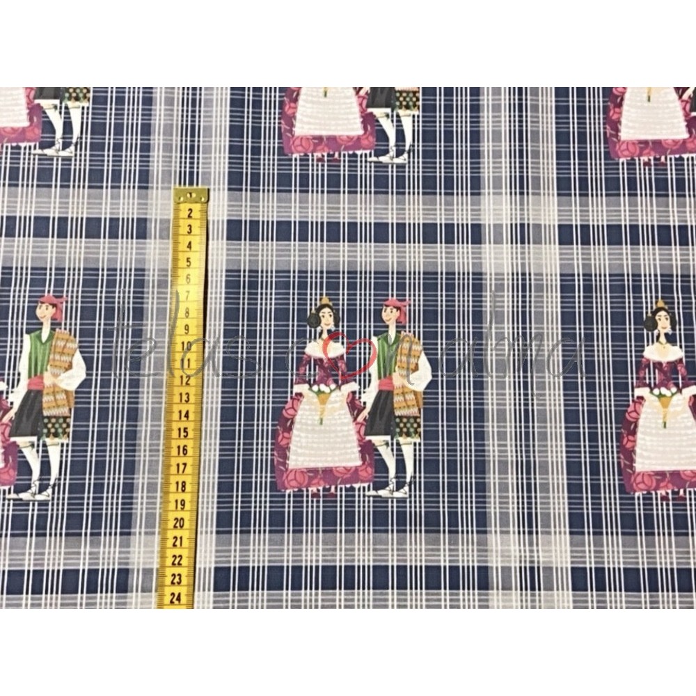 Estampado con motivos falleros, ideal para la confección de todo tipo de vestuario así como de adornos para la ropa como: bolsillos, mangas o cenefas por ejemplo.