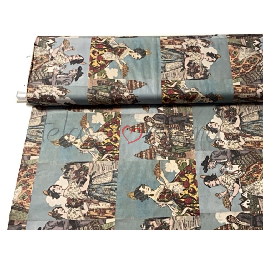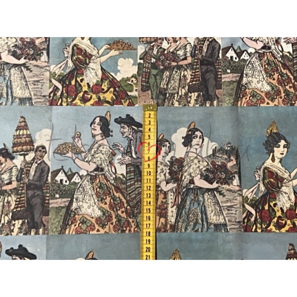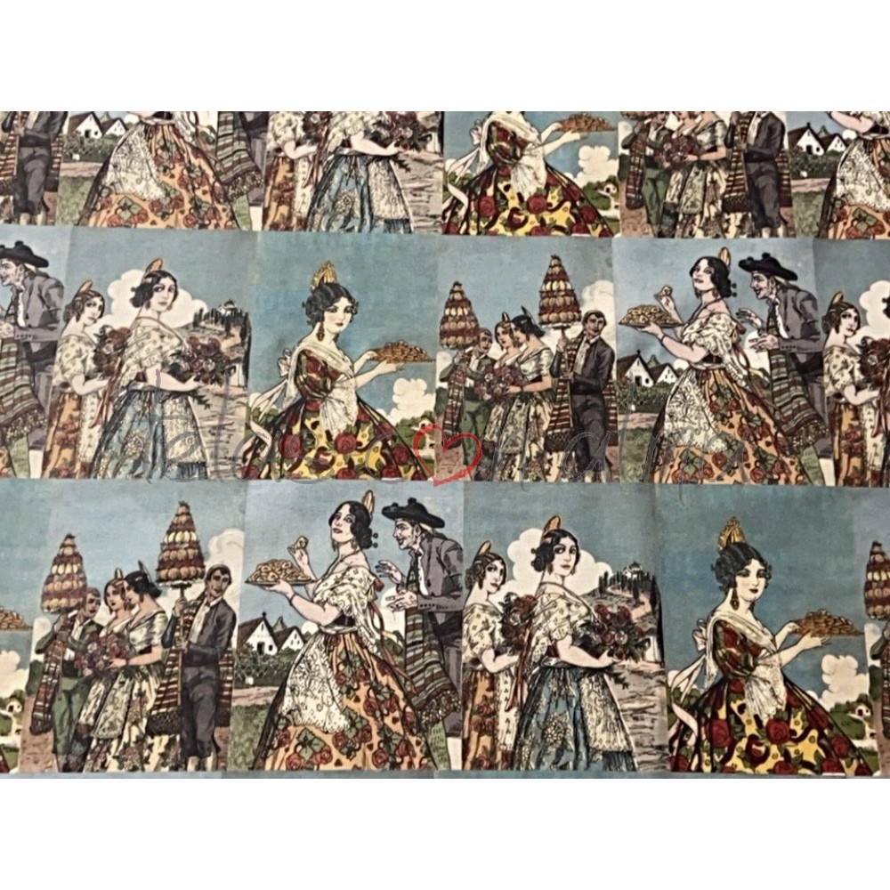Estampado con motivos falleros, ideal para la confección de todo tipo de vestuario así como de adornos para la ropa como: bolsillos, mangas o cenefas por ejemplo.