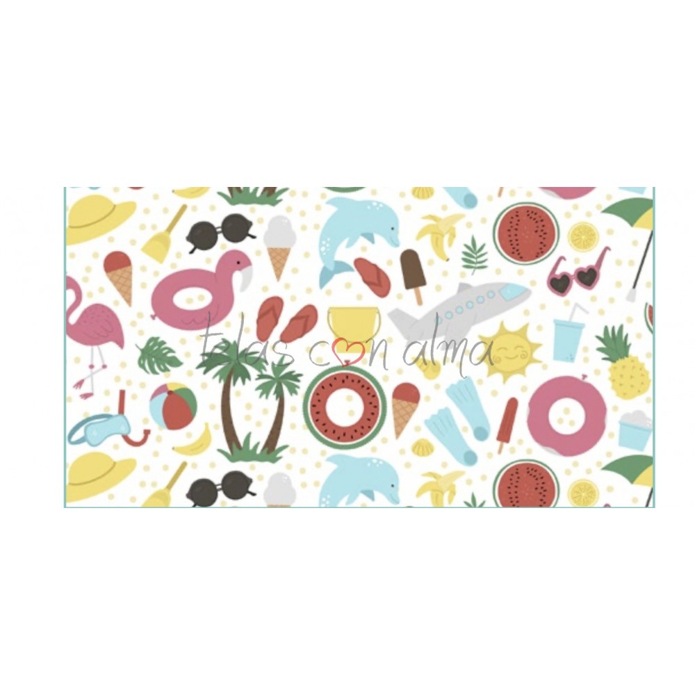 Tela de algodón 100% ideal para la confección de mascarillas, gorro sanitario o de cocinero, complementos en ropa, mochilas de cordón.