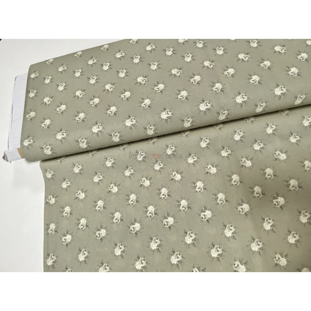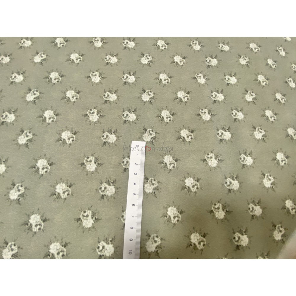Estampado de flores sobre fondo verde , ideal para la confección de mascarillas para este otoño, ropa, cojines, bolso o neceser...