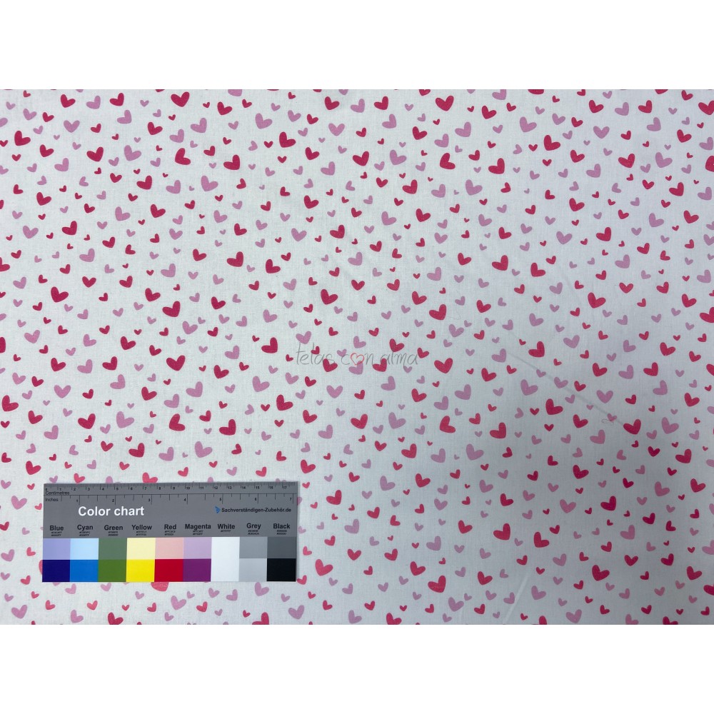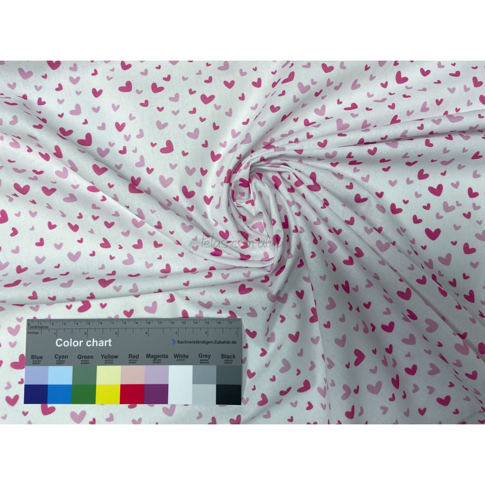 Popelin estampado con corazones en varias tonalidades de rosa.