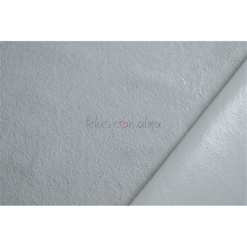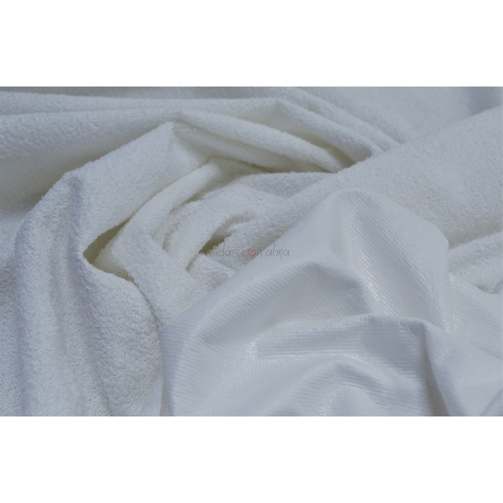 Por un lado rizo y por el otro el PVC que le proporciona la impermeabilidad.