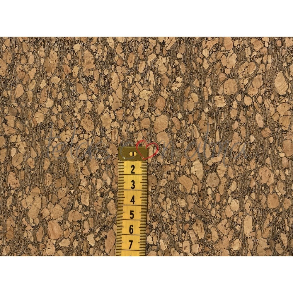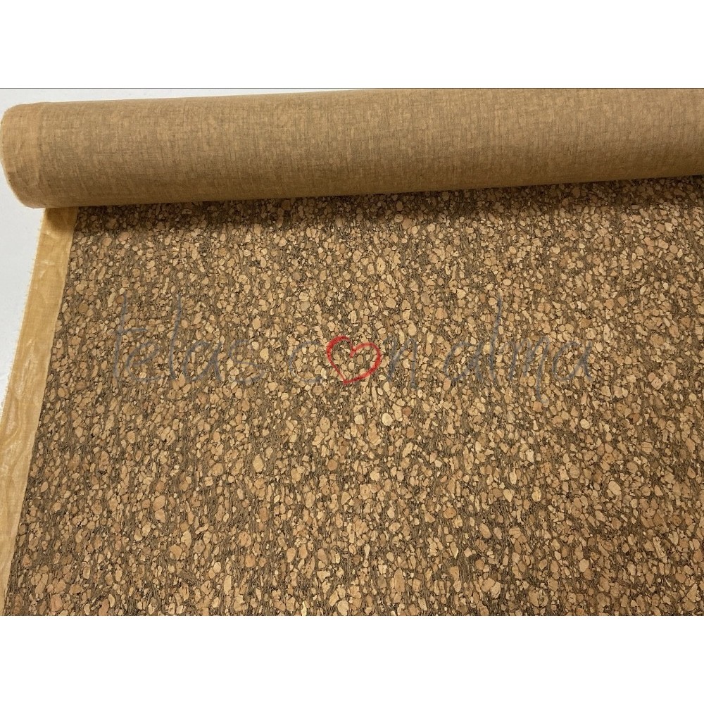 Tejido de corcho natural. Se cose fácilmente en la máquina de coser casera.